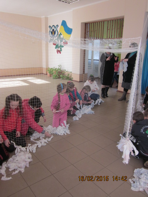Учні нашої школи долучилися до акції плетіння маскувальних сіток, яку запропонувала у районній газеті директор Бучацької ЗОШ №3 Г.М.Ненич. Уже виготовлено 2 маскувальні сітки а також зібрано солодощі для воїнів АТО і передано в волонтерський пункт м.Бучач.